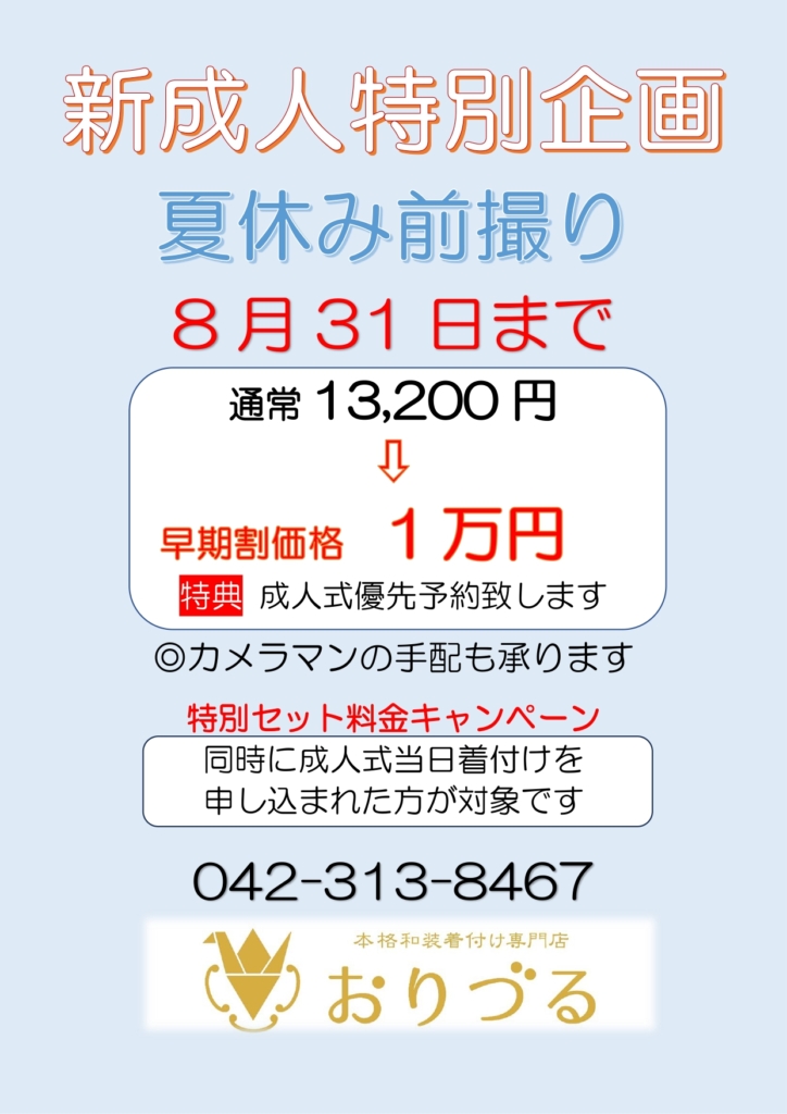 〈8/31まで〉新成人特別企画!夏休み前撮り