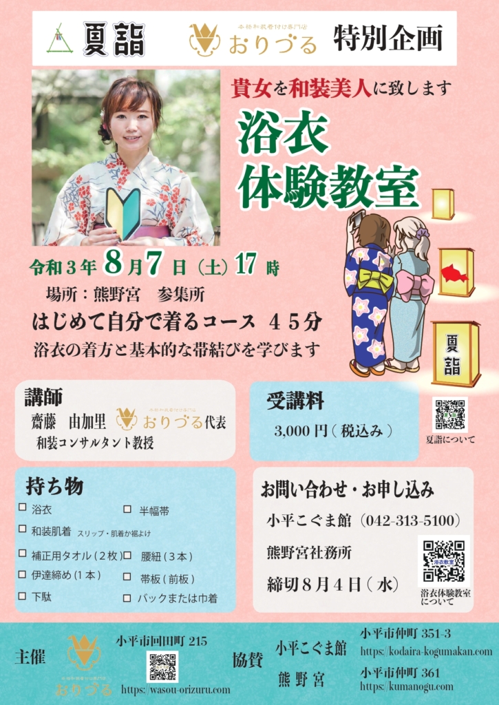 【夏詣おりづる特別企画】浴衣体験教室